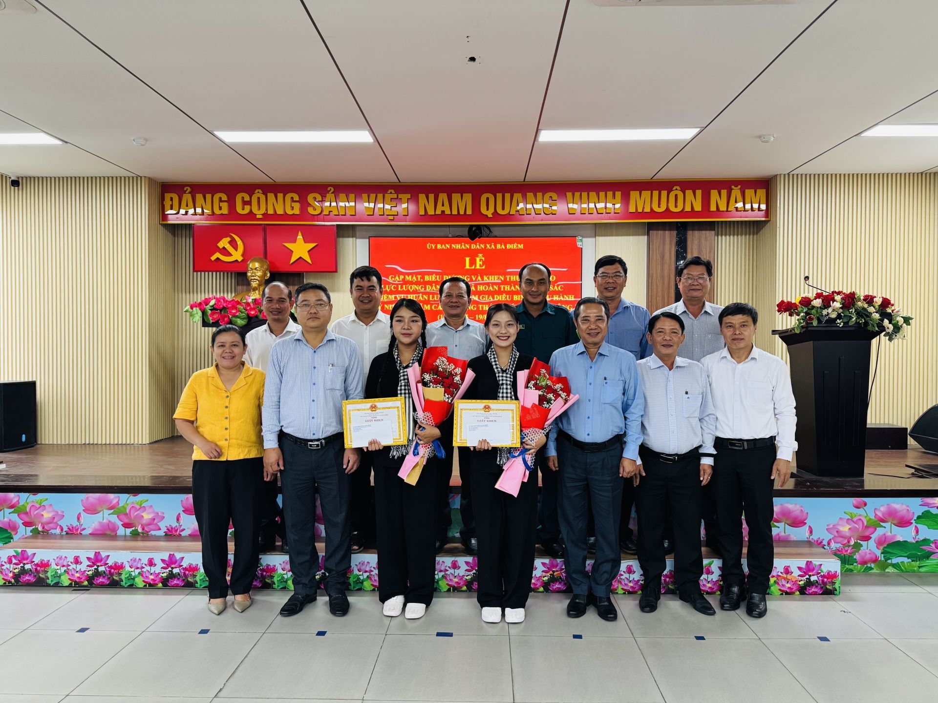 Đợt này, xã Bà Điểm có 3 chiến sĩ thuộc đơn vị Ban Chỉ huy Quân sự xã được biểu dương, khen thưởng là đồng chí Lê Gia Hân, Đồng An Thư và Nguyễn Thị Cẩm Tú.