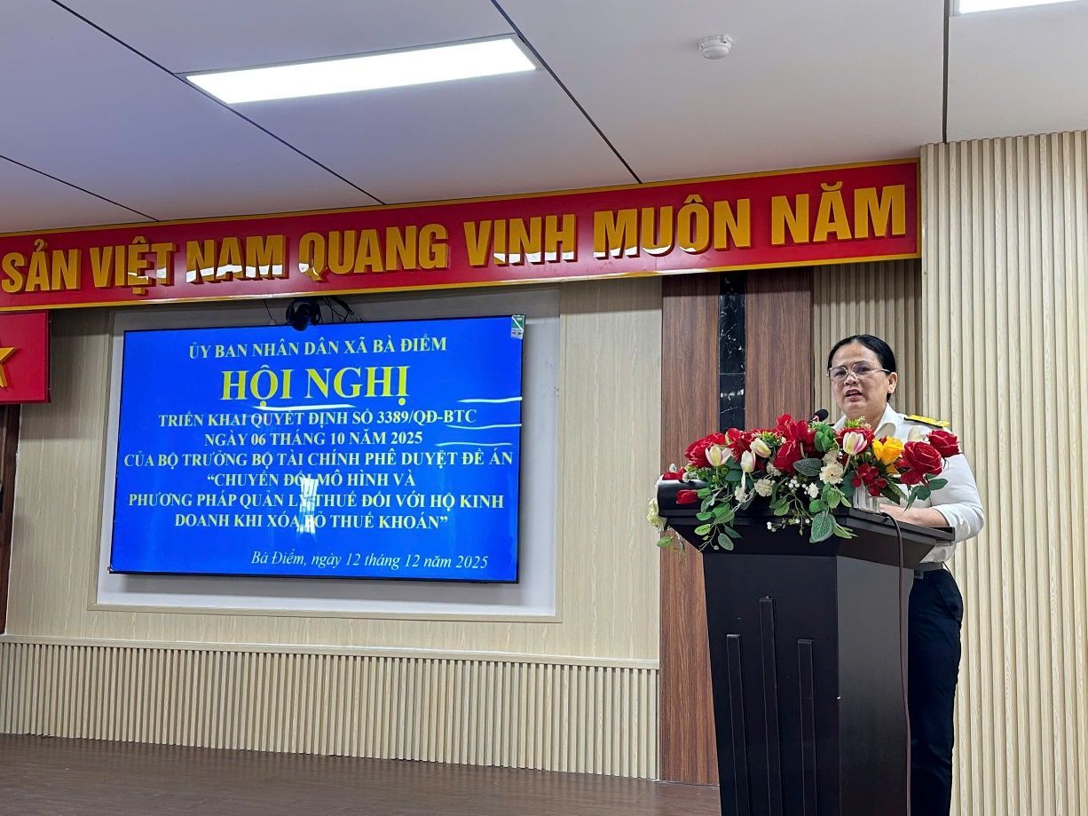 Thực hiện Kế hoạch số 3009/KH-UBND ngày 30 tháng 10 năm 2025 của Ủy ban nhân dân xã Bà Điểm thực hiện nhiệm vụ trọng tâm 03 tháng cuối năm 2025 về công tác phổ biến, giáo dục pháp luật trên địa bàn xã. Chiều ngày 12 tháng 12 năm 2025, Ủy ban nhân dân xã Bà Điểm đã long trọng tổ chức Hội nghị triển khai Quyết định số 3389/QĐ-BTC ngày 06 tháng 10 năm 2025 của Bộ Trưởng Bộ Tài chính phê duyệt Đề án “Chuyển đổi mô hình và phương pháp quản lý thuế đối với hộ kinh doanh khi xóa bỏ thuế khoán”. Hội nghị đồng thời truyền thông điệp: “60 ngày hành động - Chuyển đổi thực chất - Nâng tầm hộ kinh doanh kê khai, minh bạch, hiện đại”.