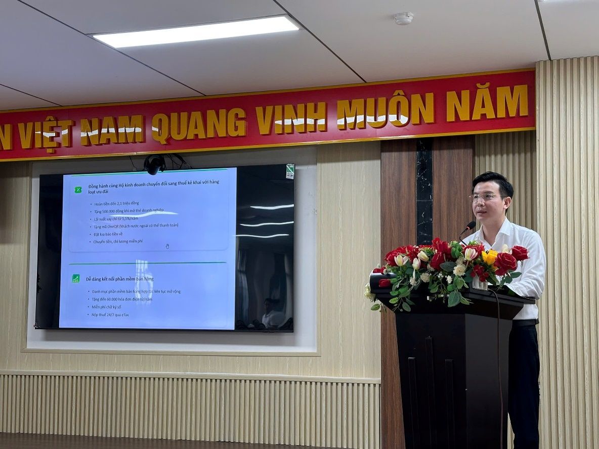 Sau đó, các hộ kinh doanh được hướng dẫn chi tiết về giải pháp hóa đơn điện tử, chữ ký số và phần mềm kế toán từ đại diện nhà cung cấp giải pháp hóa đơn điện tử KiotViet, hướng dẫn ghi chép sổ kế toán và hóa đơn, chứng từ của Công ty TNHH dịch vụ và tư vấn thuế Gia Long, các chính sách đồng hành cùng Hộ kinh doanh trong quá trình chuyển đổi thuế từ đại diện ngân hàng Vietcombank.