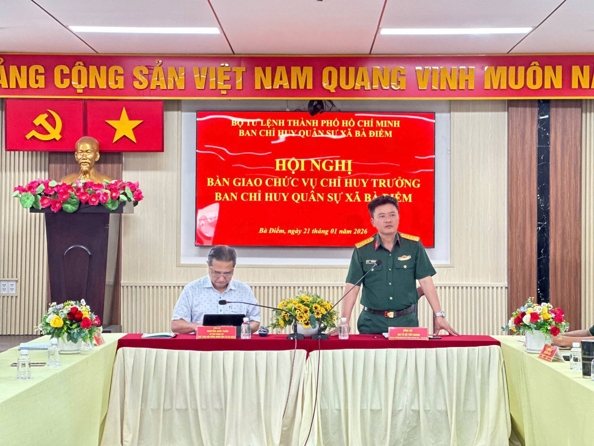 Chiều 21/1, Ban Chỉ huy Quân sự xã Bà Điểm, Thành phố Hồ Chí Minh tổ chức hội nghị bàn giao nhiệm vụ Chỉ huy trưởng Ban Chỉ huy Quân sự xã.