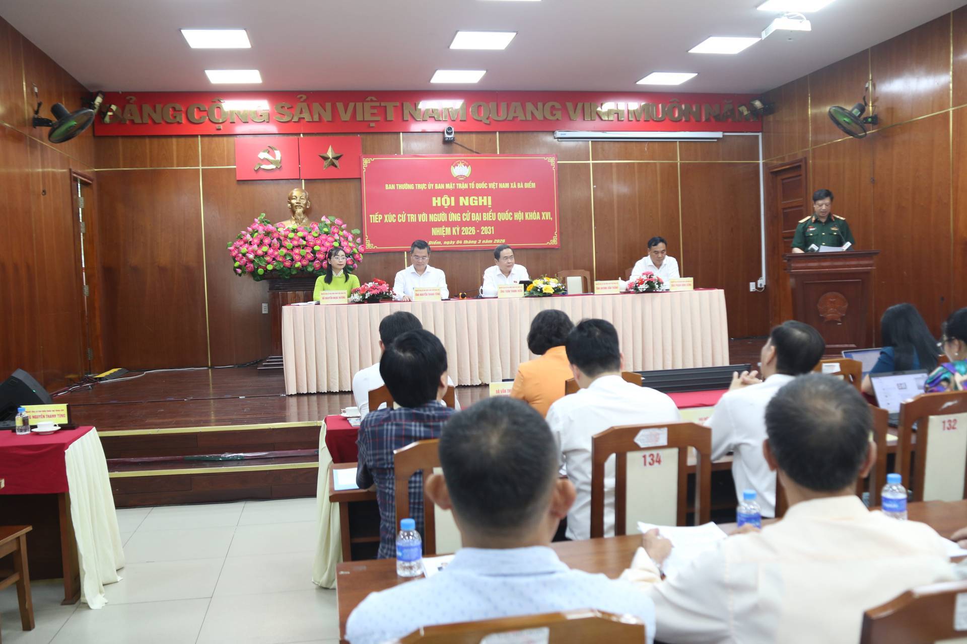 Sáng ngày 04/03, tại hội trường Công an xã Bà Điểm, đồng chí Trần Thanh Mẫn - Ủy viên Bộ Chính trị, Chủ tịch Quốc hội, Chủ tịch Hội đồng Bầu cử quốc gia tham dự Hội nghị tiếp xúc cử tri với người ứng cử đại biểu Quốc hội khóa XVI, nhiệm kỳ 2026 - 2031, đơn vị bầu cử số 12. Hội nghị được tổ chức trực tiếp tại xã Bà Điểm và trực tuyến đến cử tri hai xã Hóc Môn và xã Xuân Thới Sơn.