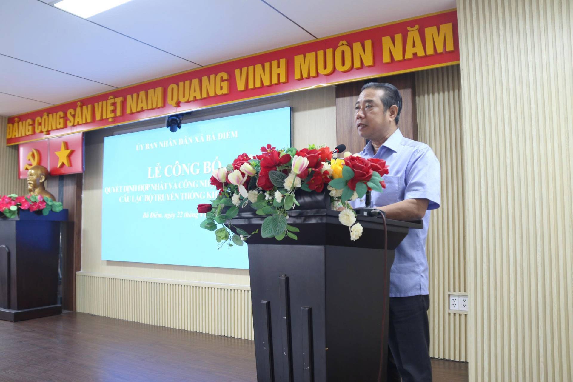 Sáng ngày 22/4, tại hội trường UBND xã, UBND xã Bà Điểm tổ chức Lễ công bố Quyết định hợp nhất và công nhận Ban Chủ nhiệm Câu lạc bộ Truyền thống kháng chiến xã Bà Điểm (CLB).