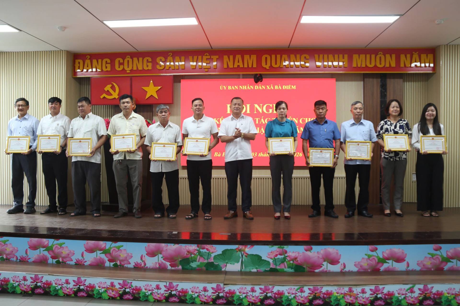 Sáng ngày 03/4, tại hội trường UBND xã, UBND xã Bà Điểm tổ chức Hội nghị tổng kết công tác tuyển chọn và gọi công dân nhập ngũ năm 2026. Tham dự có đồng chí Nguyễn Anh Tuấn - Bí thư Đảng ủy, Chủ tịch HĐND xã; đồng chí Nguyễn Tuấn Anh - Phó Bí thư Đảng ủy, Chủ tịch UBND xã; đồng chí Phạm Quốc Thới - Ủy viên Ban Thường vụ (UVBTV) Đảng ủy, Chỉ huy trưởng Ban Chỉ huy Quân sự xã; đồng chí Phạm Văn Mơ - UVBTV Đảng ủy, Trưởng Công an xã…