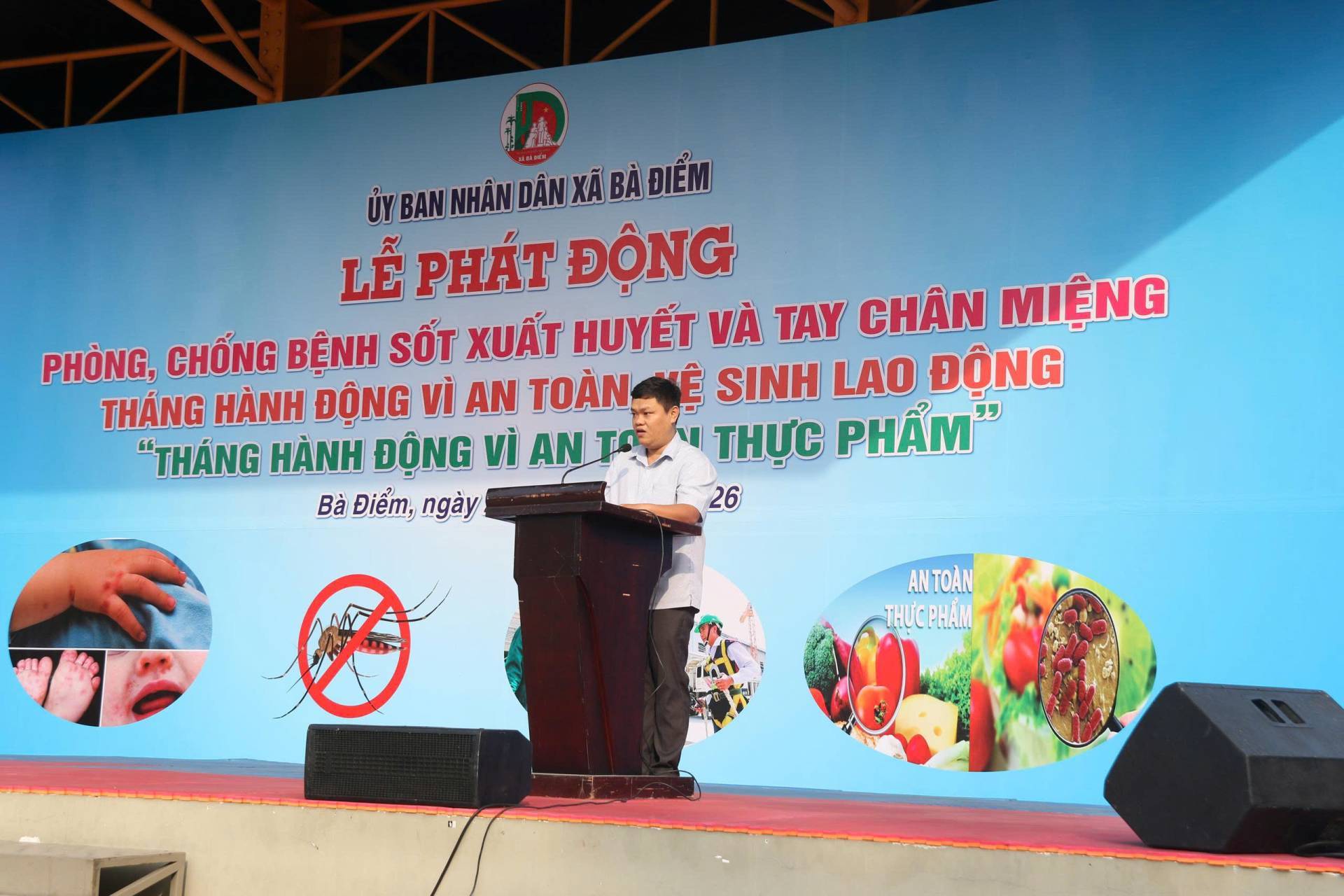 UBND XÃ BÀ ĐIỂM TỔ CHỨC LỄ PHÁT ĐỘNG PHÒNG, CHỐNG BỆNH SỐT XUẤT HUYẾT VÀ TAY CHÂN MIỆNG; THÁNG HÀNH ĐỘNG VÌ AN TOÀN, VỆ SINH LAO ĐỘNG; THÁNG HÀNH ĐỘNG VÌ AN TOÀN THỰC PHẨM