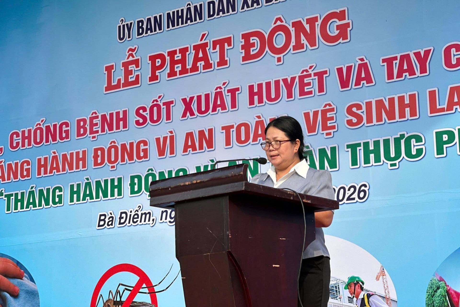 Sáng ngày 25/4, tại trụ sở Trung tâm Cung ứng dịch vụ công xã, UBND xã Bà Điểm tổ chức Lễ phát động phòng, chống bệnh Sốt xuất huyết và Tay chân miệng; Tháng hành động vì an toàn, vệ sinh lao động; Tháng hành động vì an toàn thực phẩm năm 2026.