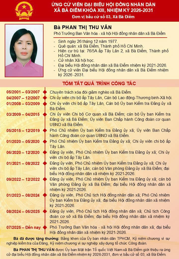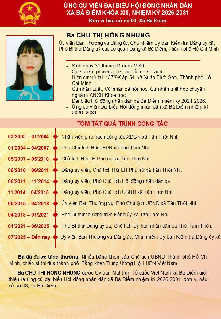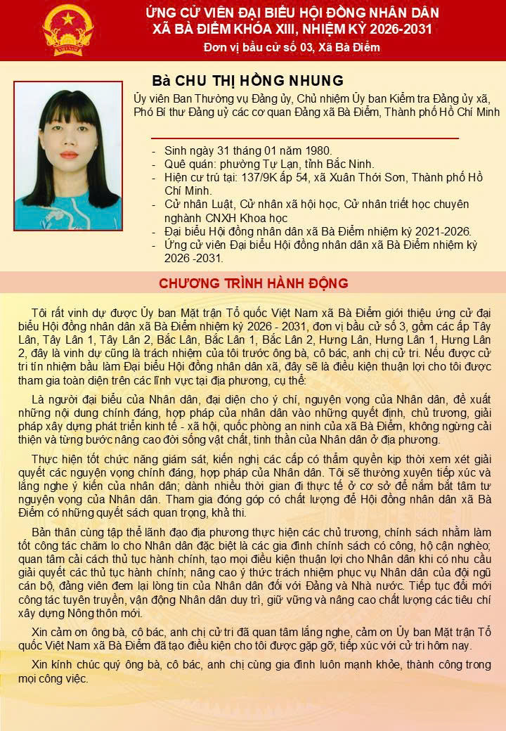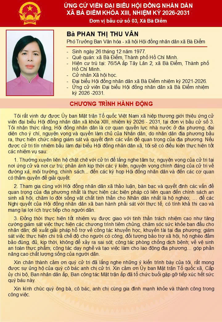 ỨNG CỬ VIÊN ĐẠI BIỂU HĐND XÃ BÀ ĐIỂM KHÓA XIII - Đơn vị bầu cử số 3