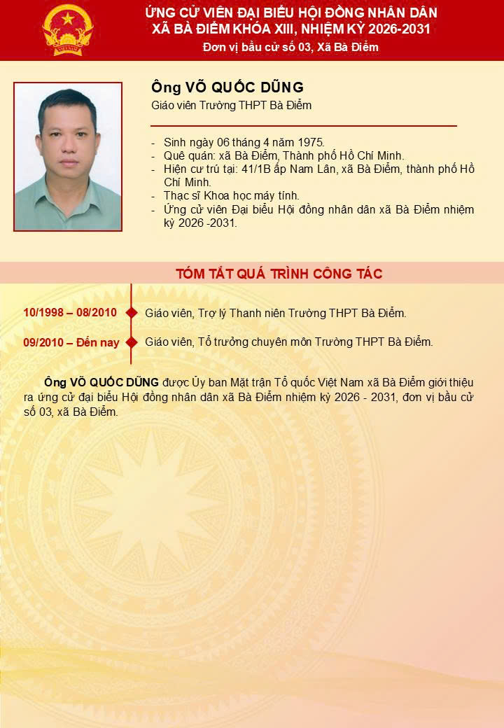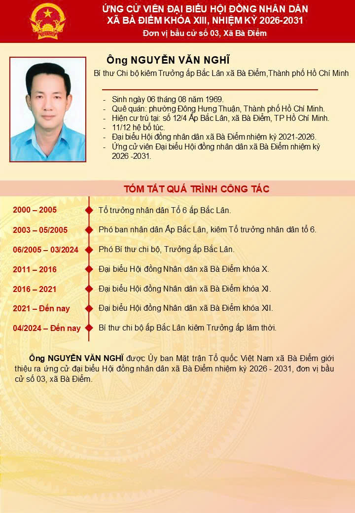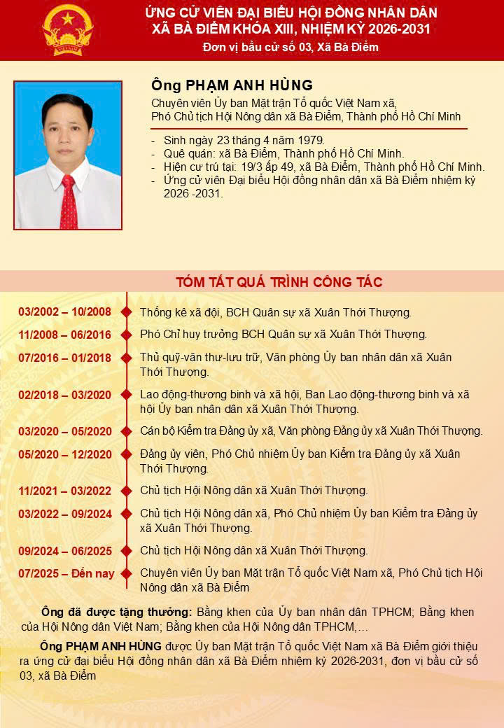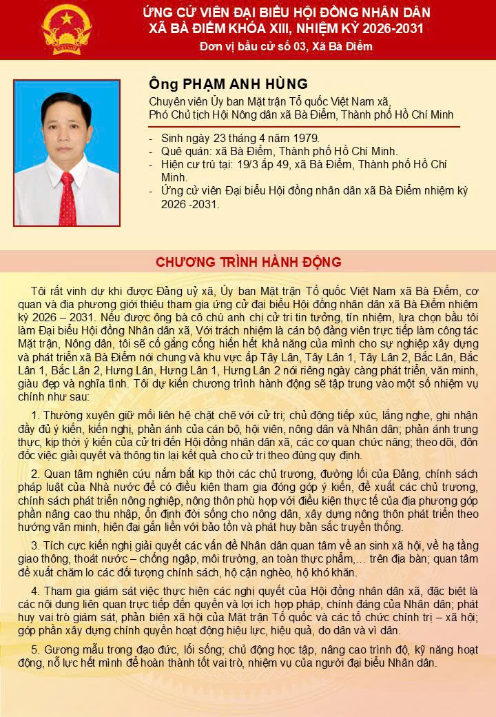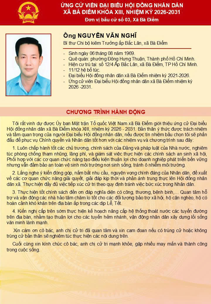 ỨNG CỬ VIÊN ĐẠI BIỂU HĐND XÃ BÀ ĐIỂM KHÓA XIII - Đơn vị bầu cử số 3