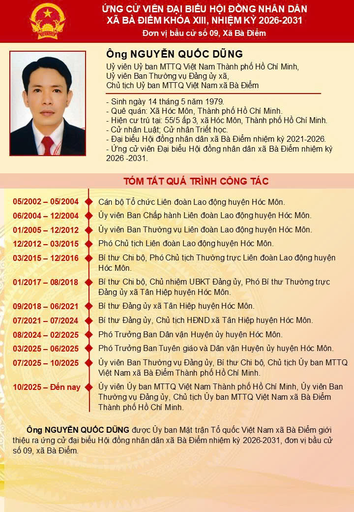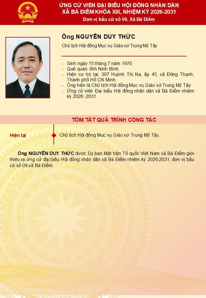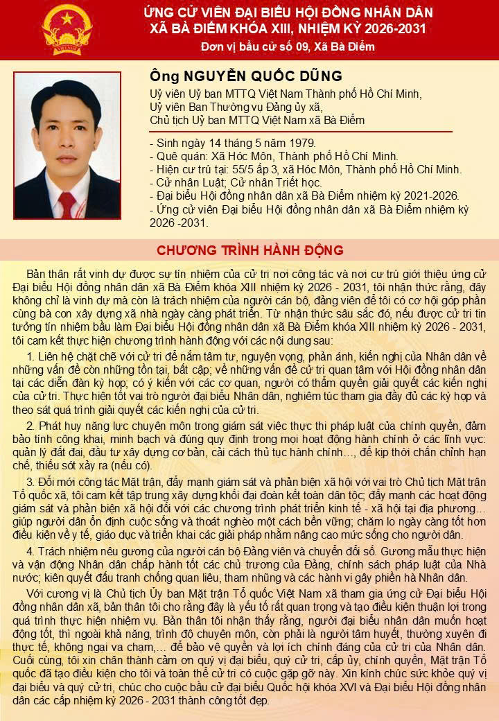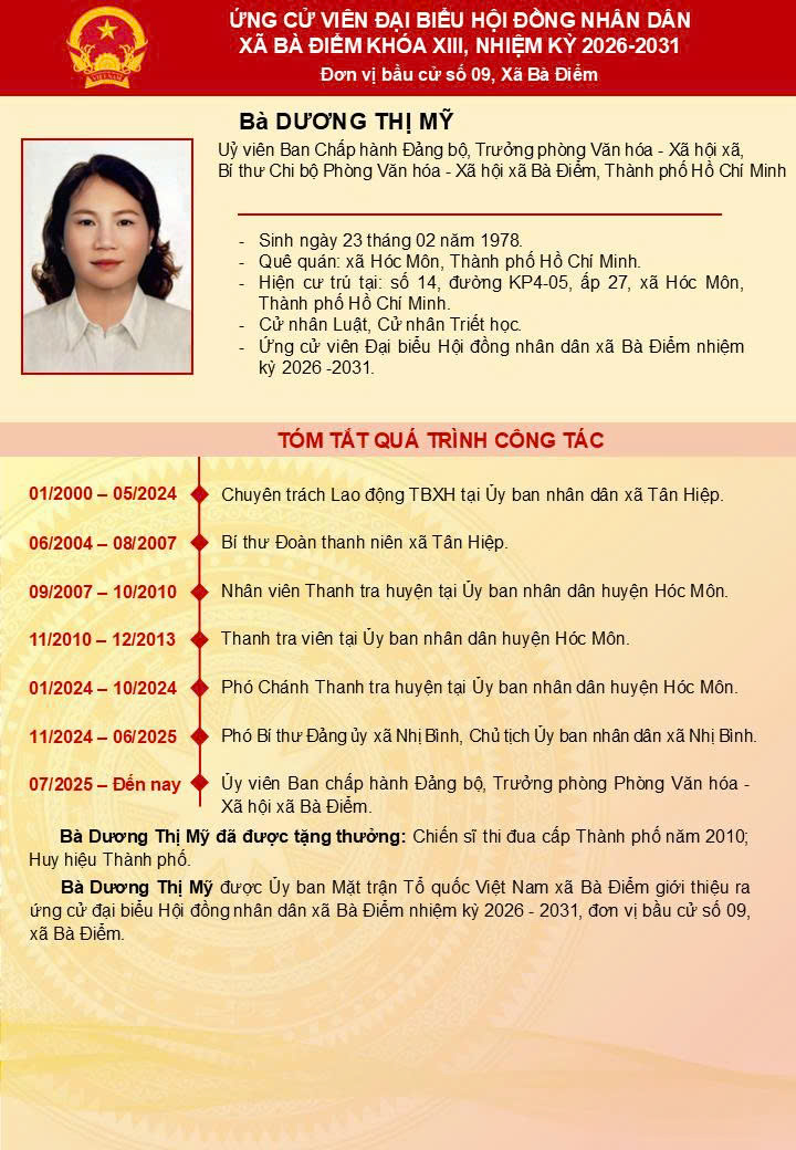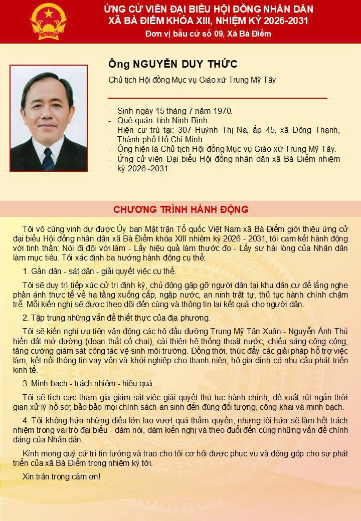 ỨNG CỬ VIÊN ĐẠI BIỂU HĐND XÃ BÀ ĐIỂM KHÓA XIII - Đơn vị bầu cử số 9