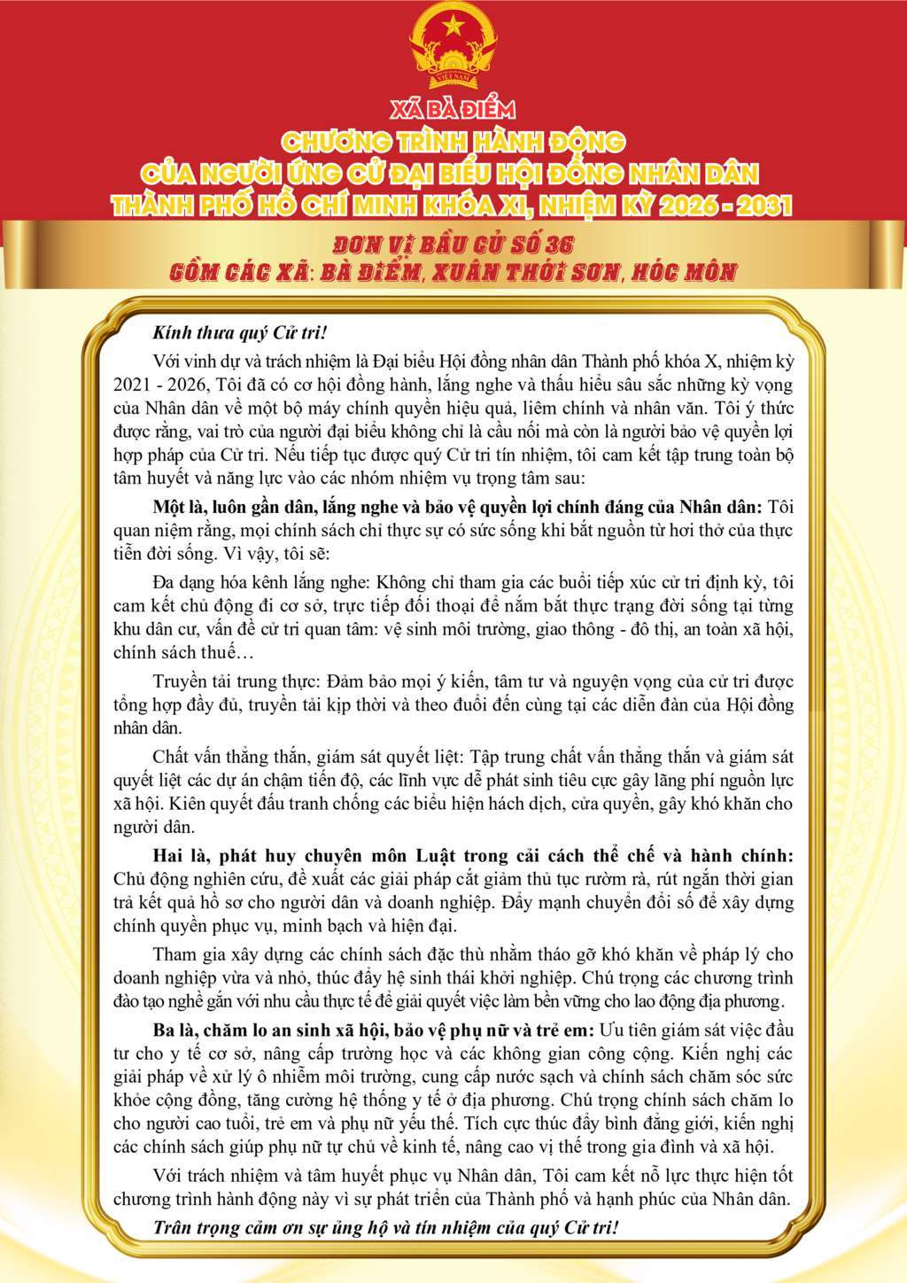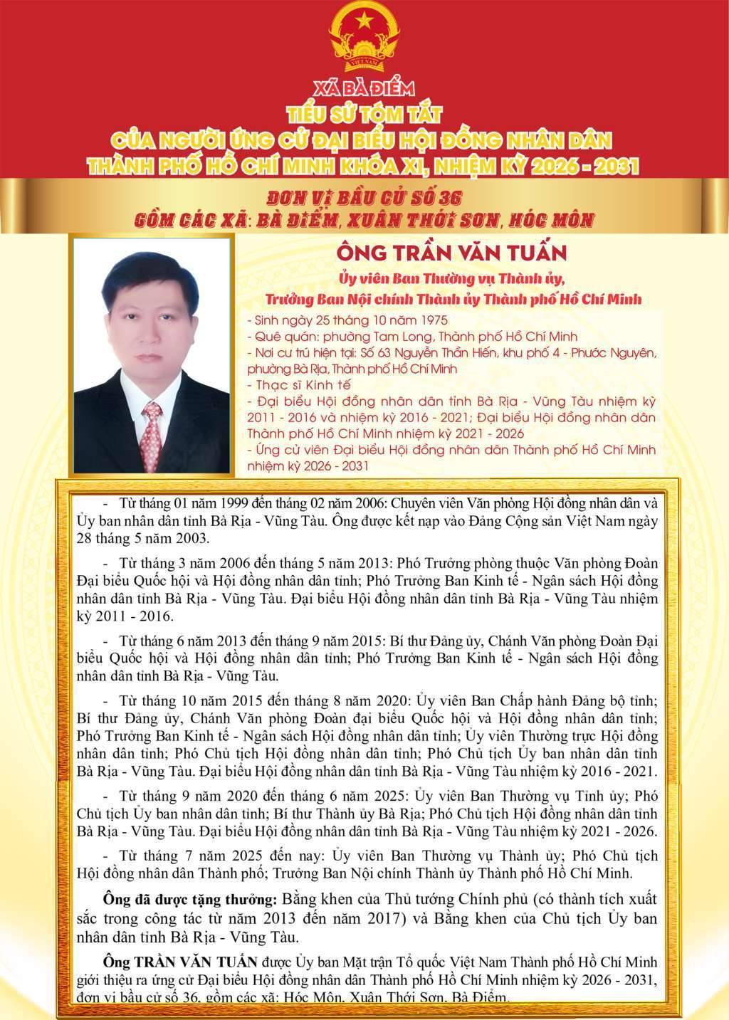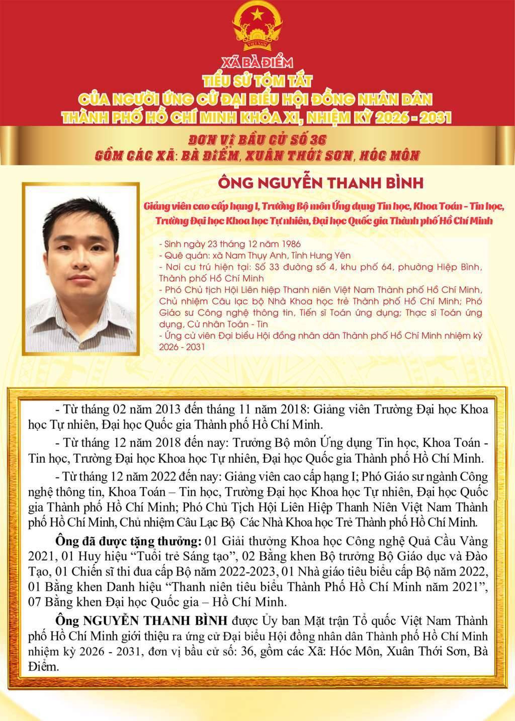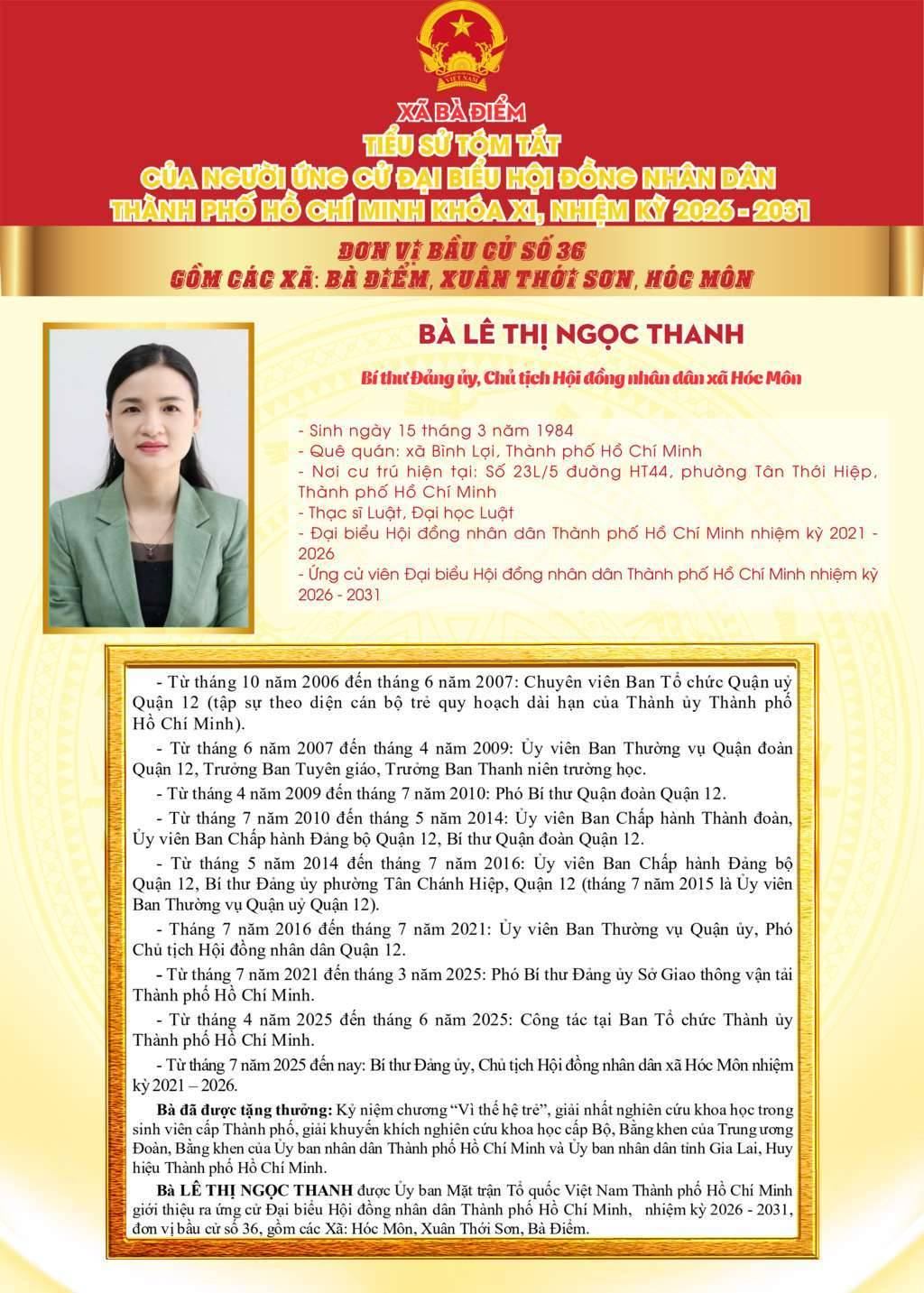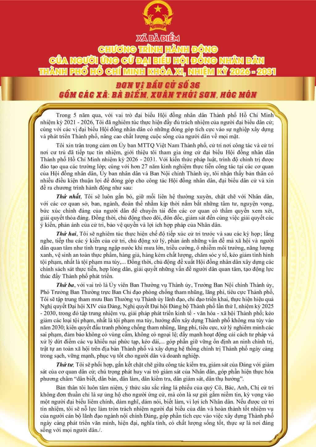 ỨNG CỬ VIÊN ĐẠI BIỂU HỘI ĐỒNG NHÂN DÂN TPHCM KHÓA XI, NHIỆM KỲ 2026 - 2031