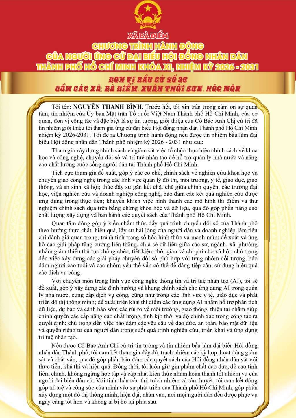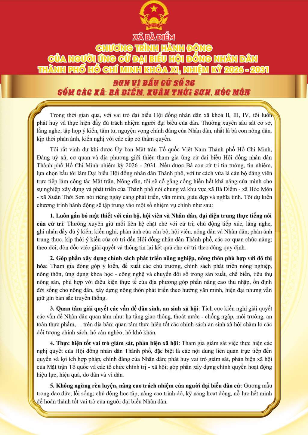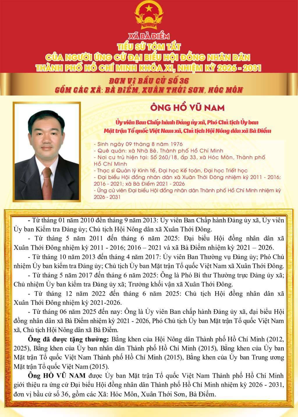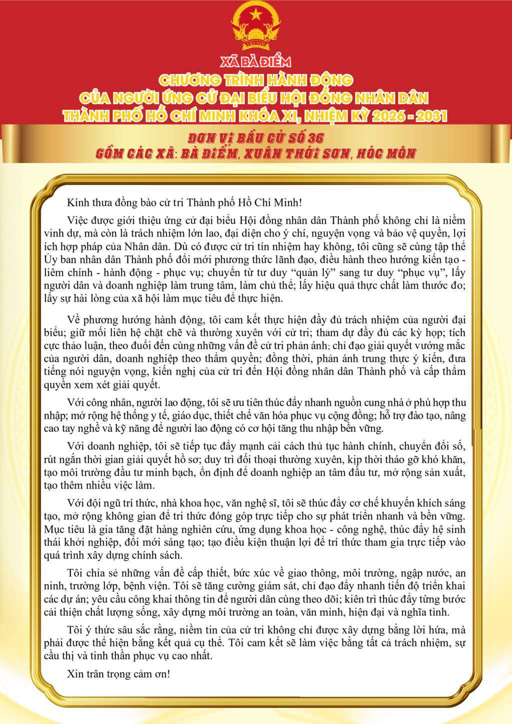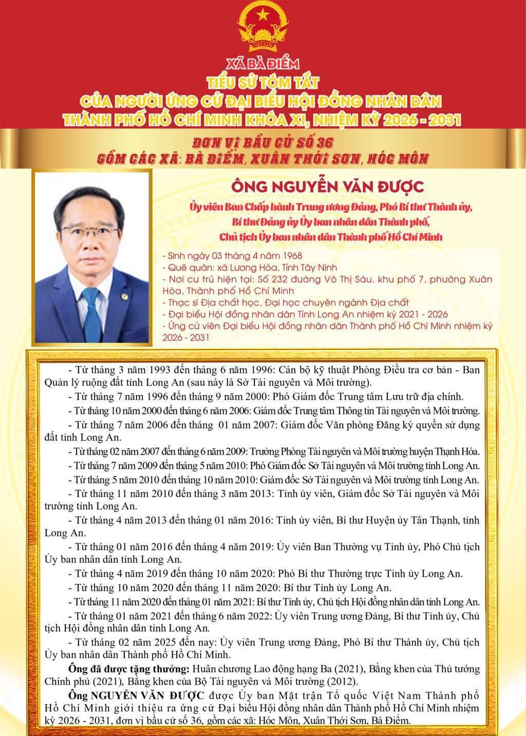 ỨNG CỬ VIÊN ĐẠI BIỂU HỘI ĐỒNG NHÂN DÂN TPHCM KHÓA XI, NHIỆM KỲ 2026 - 2031