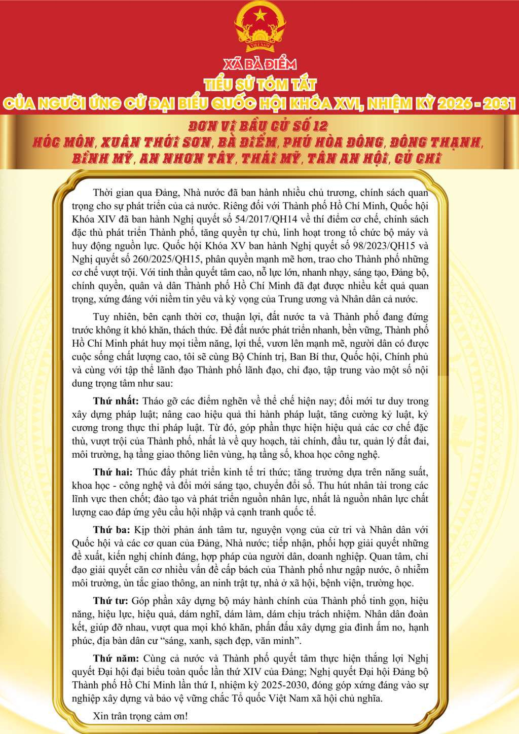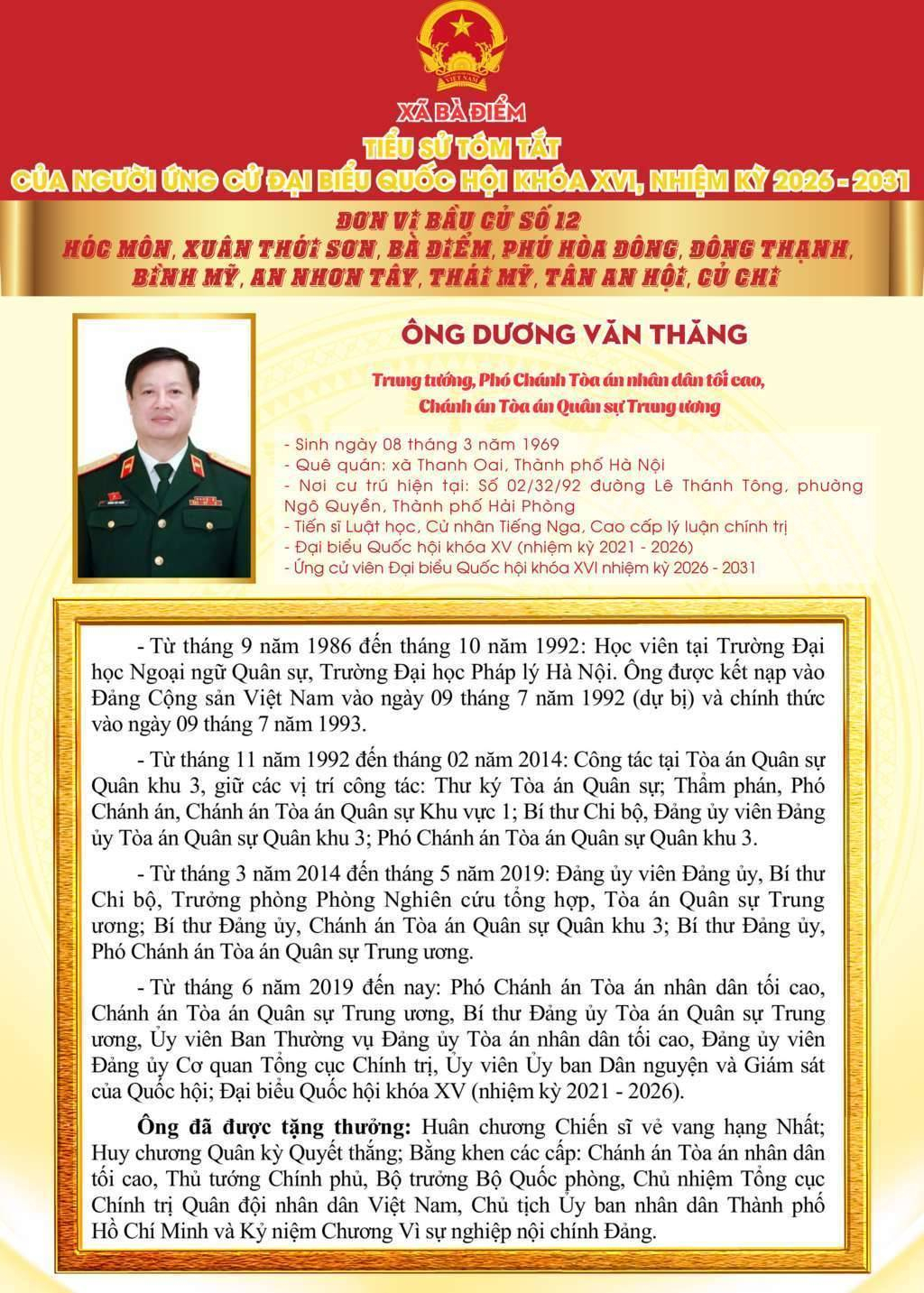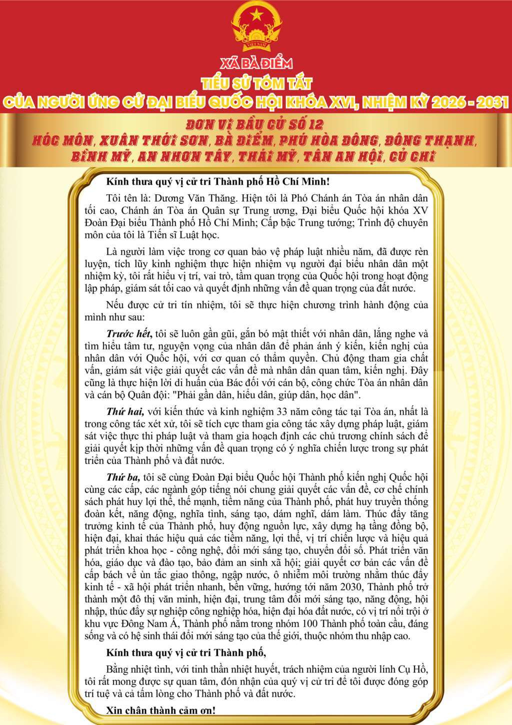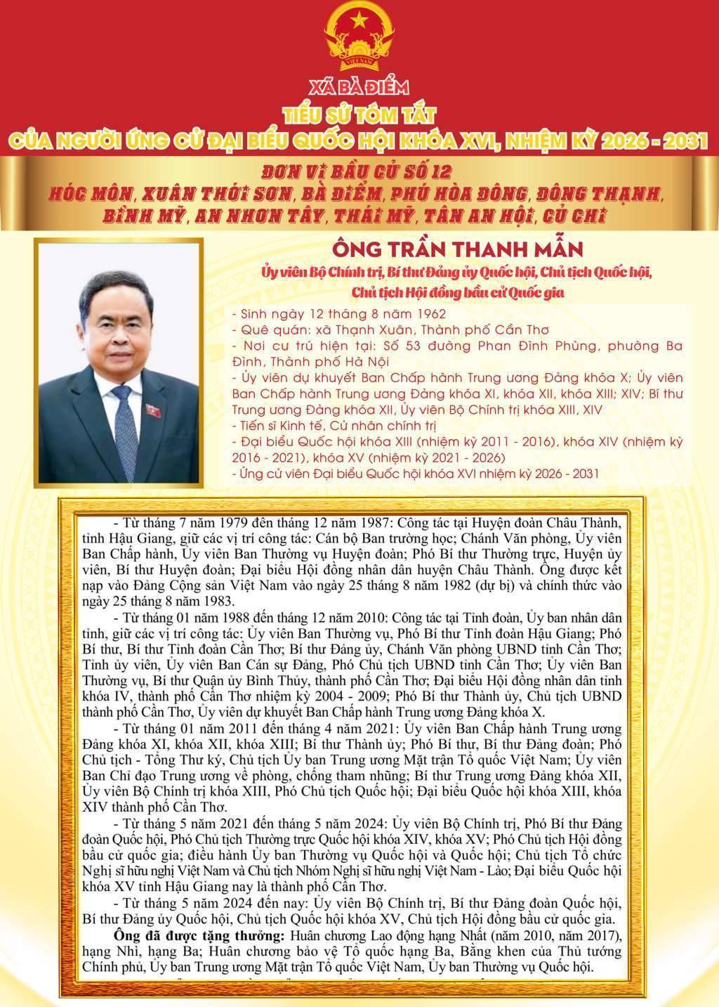 ỨNG CỬ VIÊN ĐẠI BIỂU QUỐC HỘI KHÓA XVI, NHIỆM KỲ 2026 - 2031