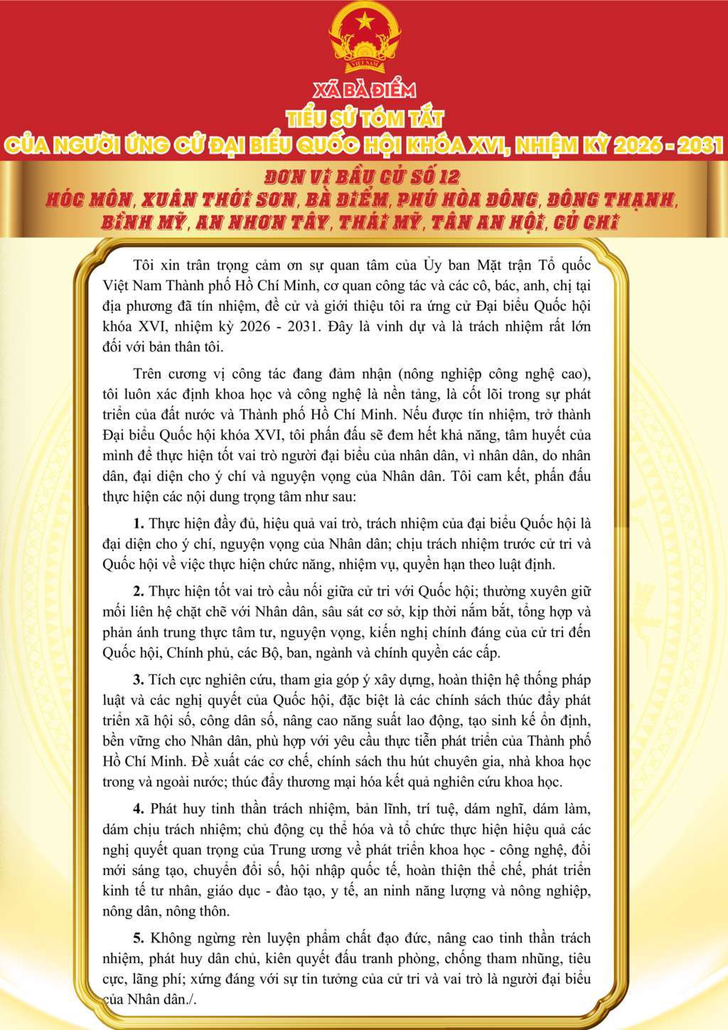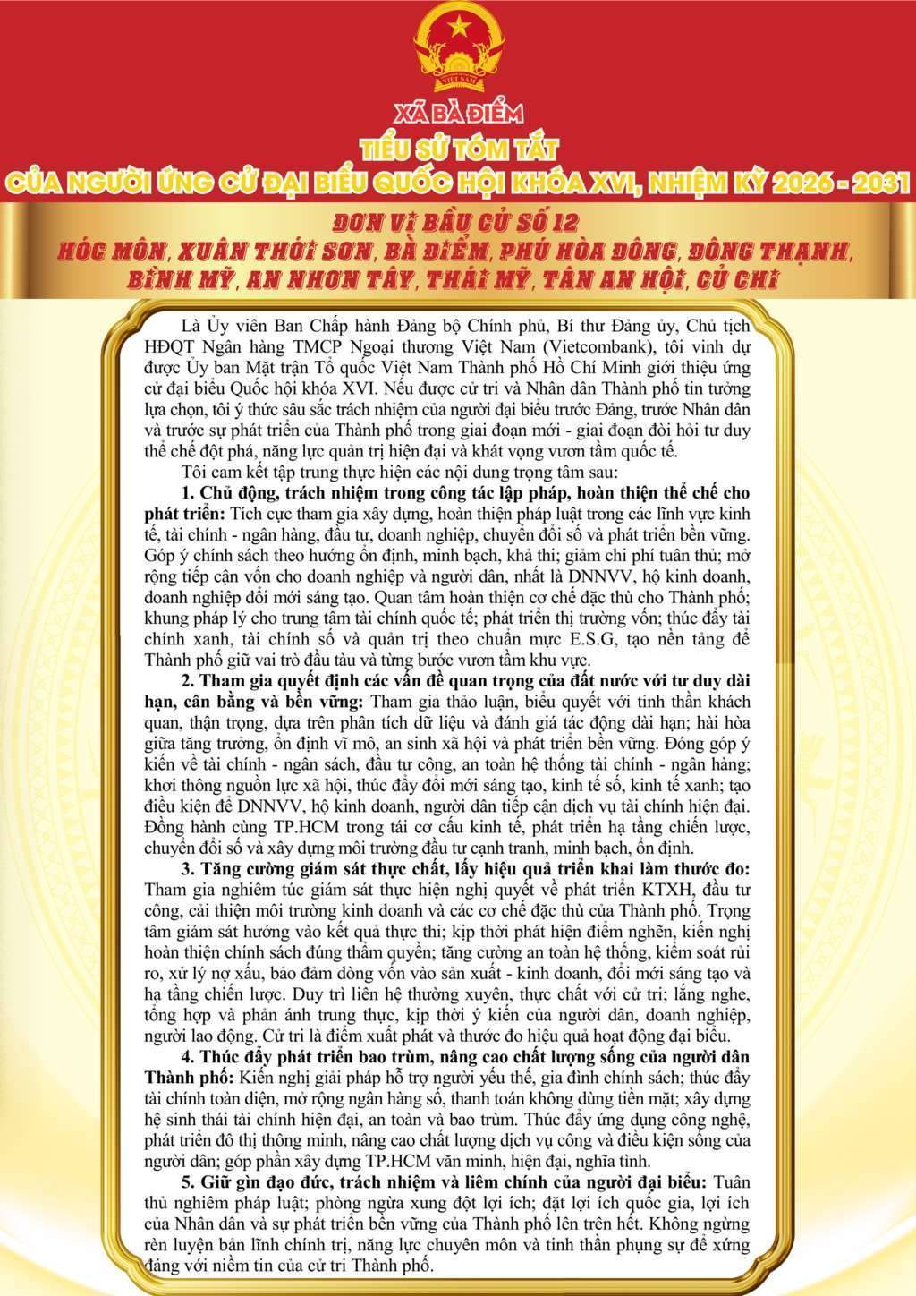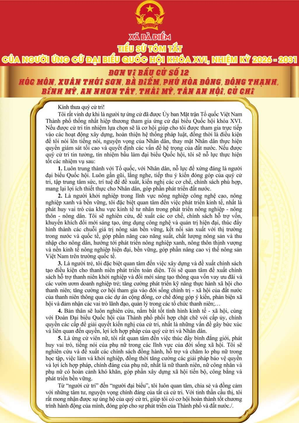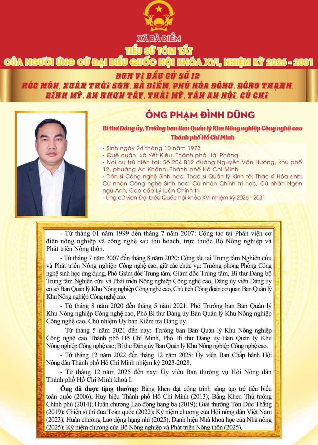 ỨNG CỬ VIÊN ĐẠI BIỂU QUỐC HỘI KHÓA XVI, NHIỆM KỲ 2026 - 2031