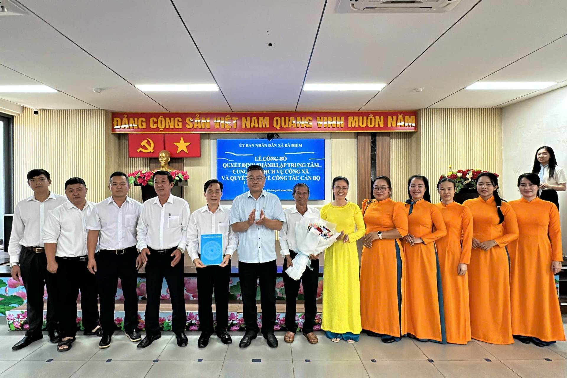 XÃ BÀ ĐIỂM TỔ CHỨC LỄ CÔNG BỐ QUYẾT ĐỊNH THÀNH LẬP TRUNG TÂM CUNG ỨNG DỊCH VỤ CÔNG XÃ VÀ TRAO QUYẾT ĐỊNH CÔNG TÁC CÁN BỘ