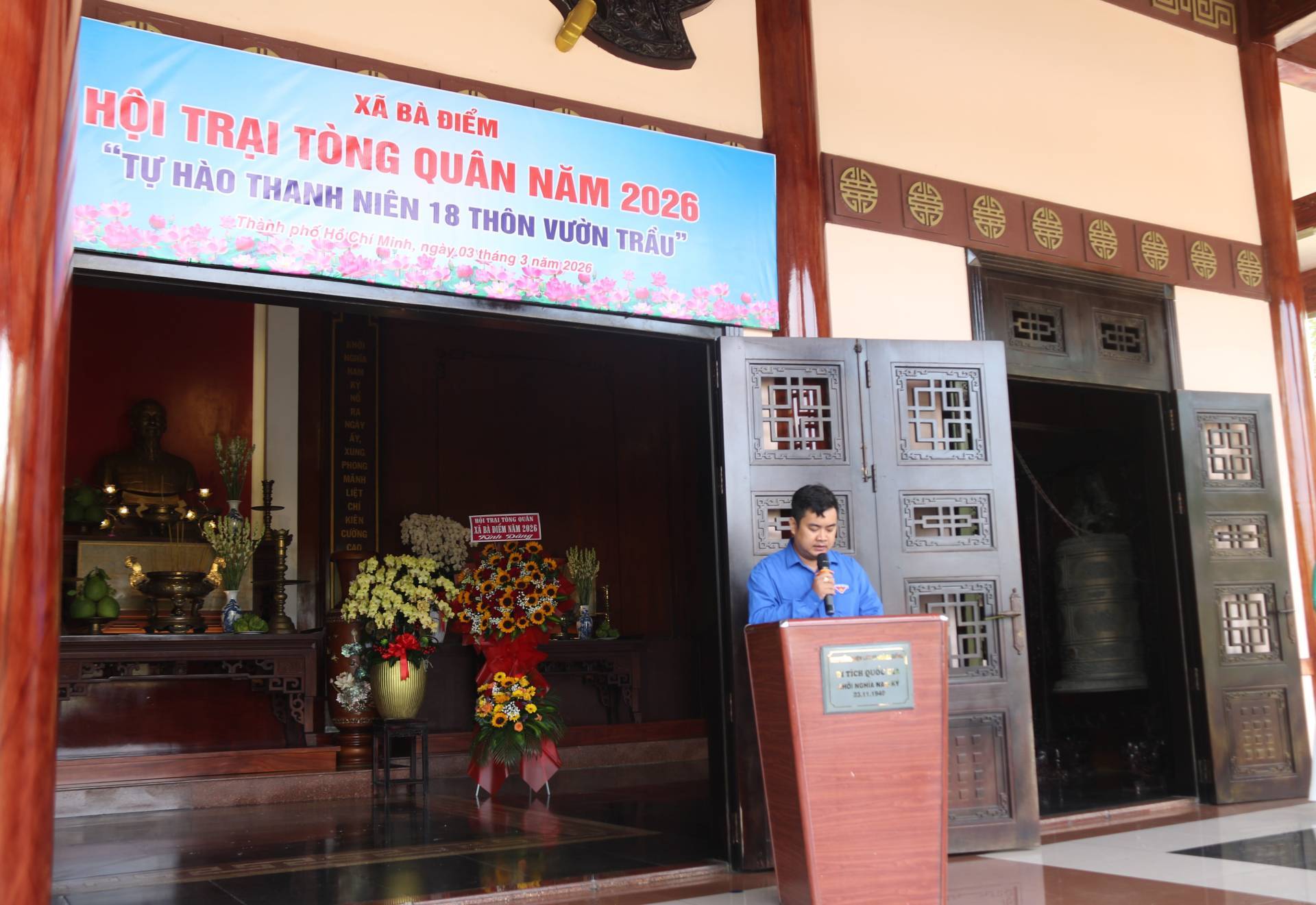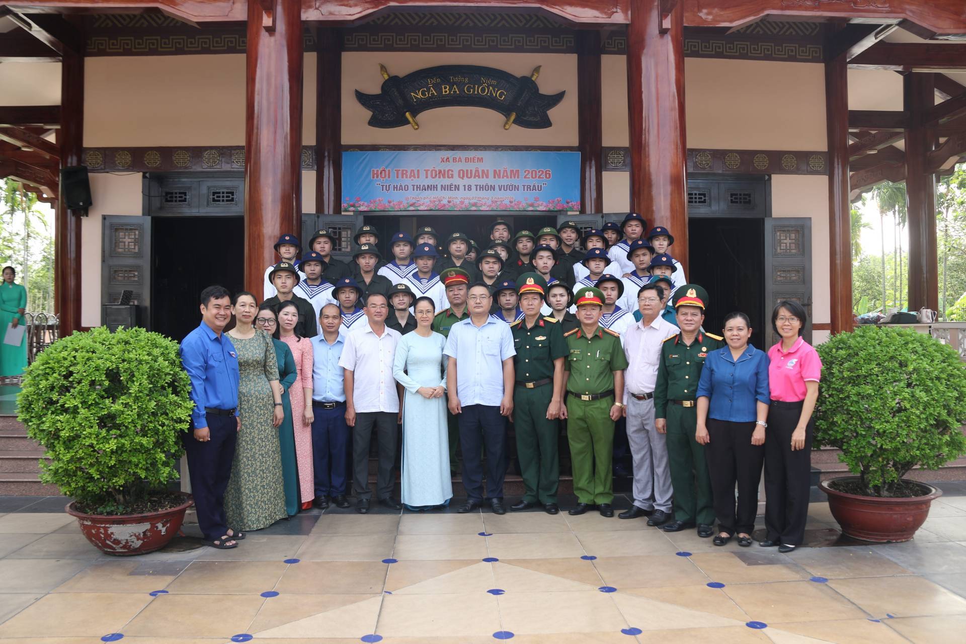 Sáng ngày 03/03, tại Khu tưởng niệm liệt sĩ Ngã Ba Giồng, UBND xã Bà Điểm tổ chức Lễ khai mạc Hội trại tòng quân năm 2026 với chủ đề “Tự hào thanh niên 18 Thôn Vườn trầu”. Tham dự có đồng chí Nguyễn Tuấn Anh - Phó Bí thư Đảng ủy, Chủ tịch UBND xã, Trưởng Ban tổ chức Hội trại tòng quân năm 2026; đồng chí Trần Thúy Hương - Ủy viên Ban Thường vụ (UVBTV) Đảng ủy, Phó Chủ tịch UBND xã; đồng chí Phạm Quốc Thới - UVBTV Đảng ủy, Chỉ huy trưởng Ban Chỉ huy Quân sự xã; đồng chí Phạm Văn Mơ - UVBTV Đảng ủy, Trưởng Công an xã…